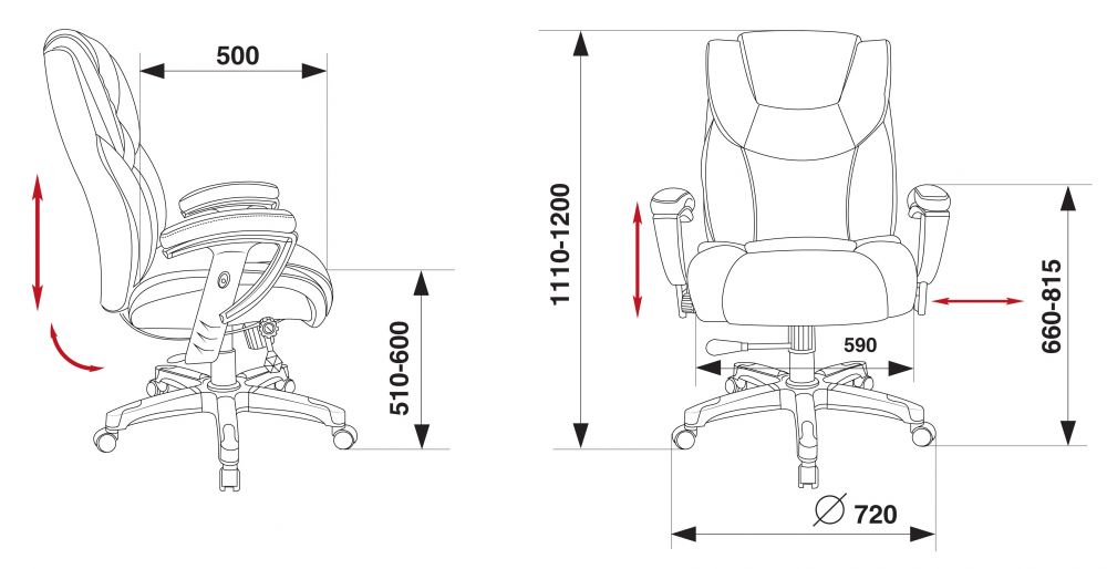 Регулируемые по высоте и ширине подлокотники, крашеный пластик с накладками